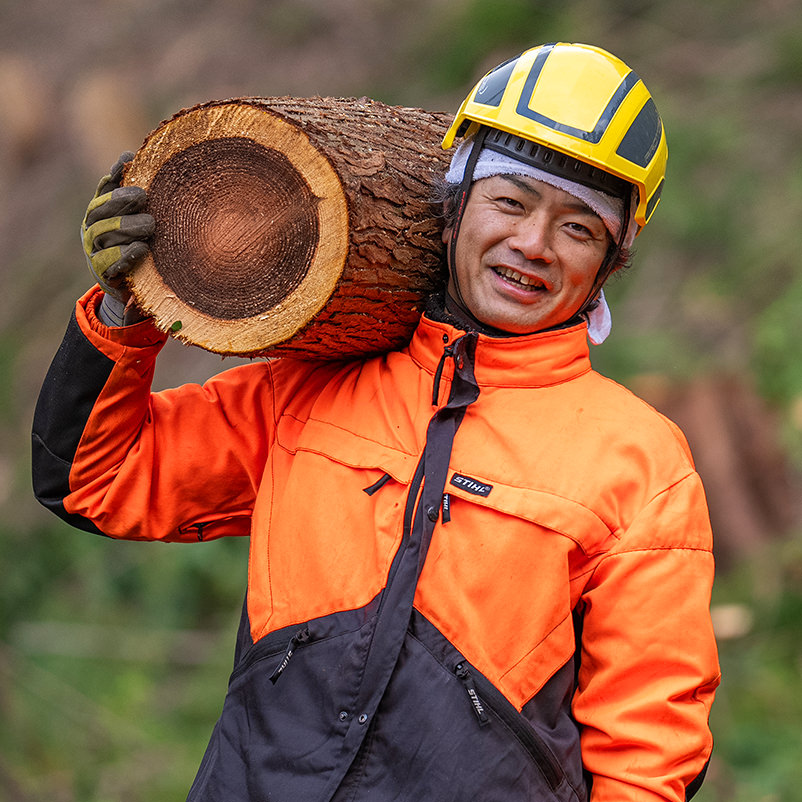 卒業後は、高度な技術を要する「特殊伐採」のプロとして独立しました。住宅地や寺社での難作業を安全に完遂することに、深いやりがいを感じています。移住という選択は、私に「一生モノの技術」と「地域での信頼」を与えてくれました。これからも技術を研鑽し、この地でプロとしての人生を楽しみながら、地域の安全を守り続けていきたいです。