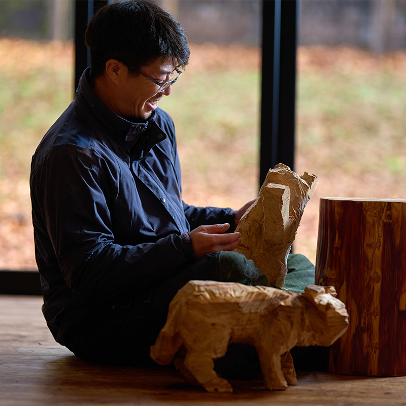 現在は「株式会社KIRecub」にて、造林・育林を主とした山作業に従事しています。 その一方で、雨の日などの空き時間を活用し、レーザーカッターを用いた木製品の製造も担当しています。
