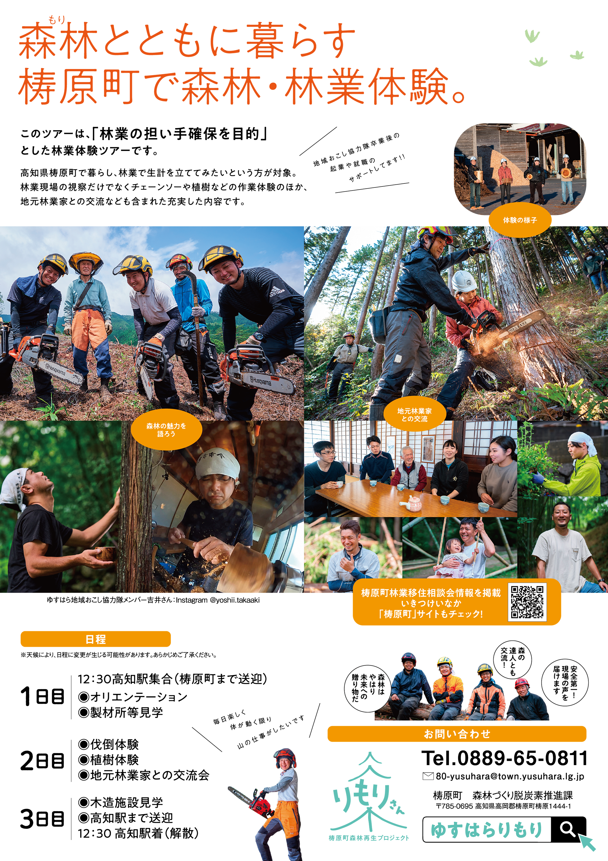 梼原町への移住と、林業を営んでみたいと考えている方への体験ツアーです。